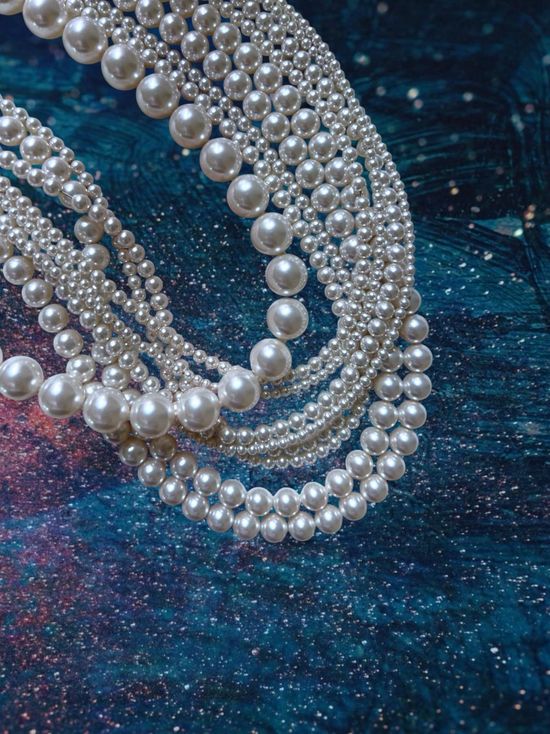 Delicate pearls scattered like stars — light, luminous, endlessly modern.